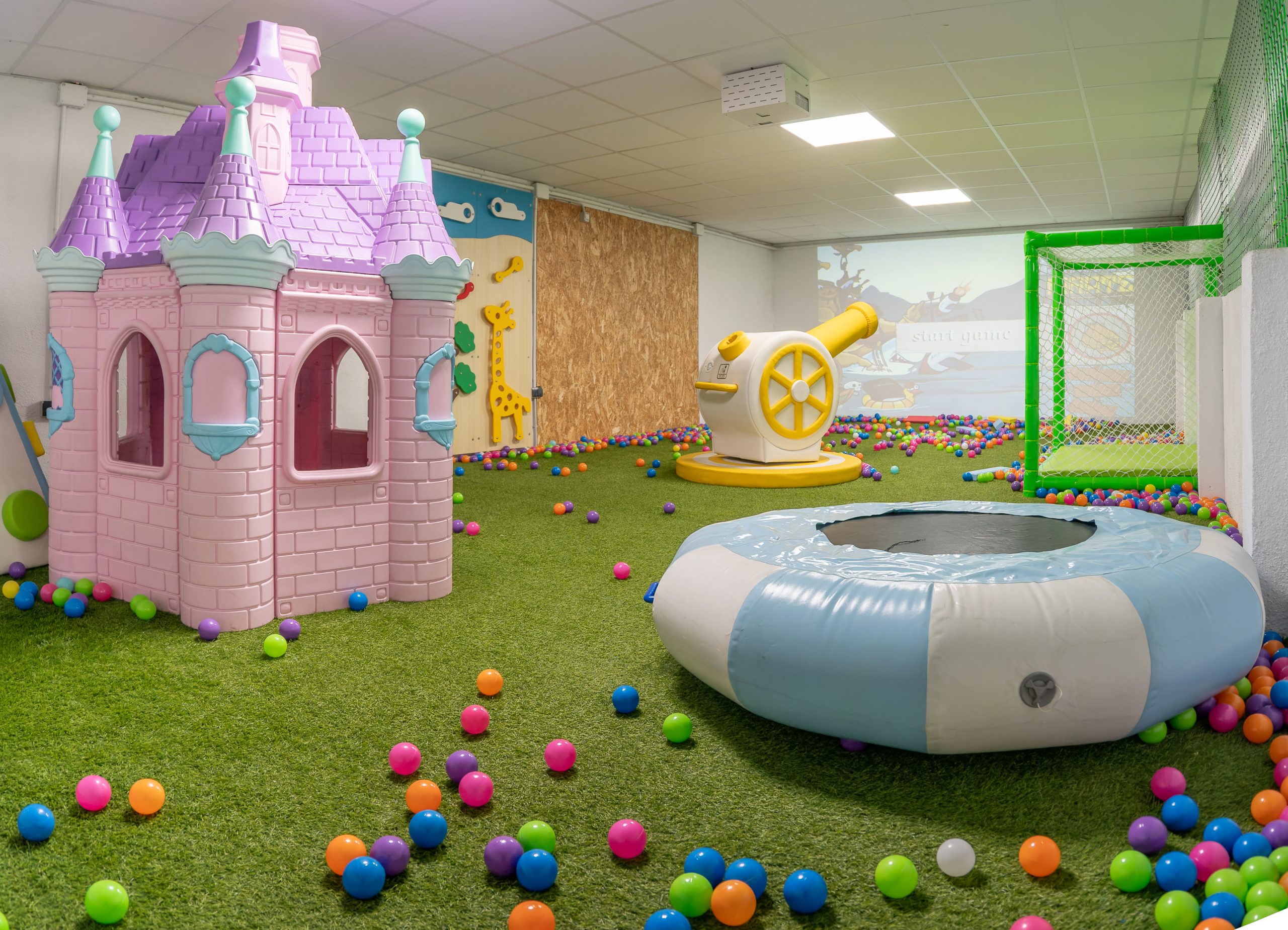 Los más pequeños disfrutarán de nuestra zona de juegos de 50 m², que incluye un emocionante parque aventura de 40 m², donde podrán explorar y desafiar sus habilidades. También contamos con una pista de fútbol de 500 m, ideal para partidos divertidos, y un tobogán en espiral que garantiza risas y emoción. Para estimular la imaginación, nuestra sala mágica está equipada con un proyector inteligente que ofrece más de 200 juegos, asegurando horas de diversión interactiva.